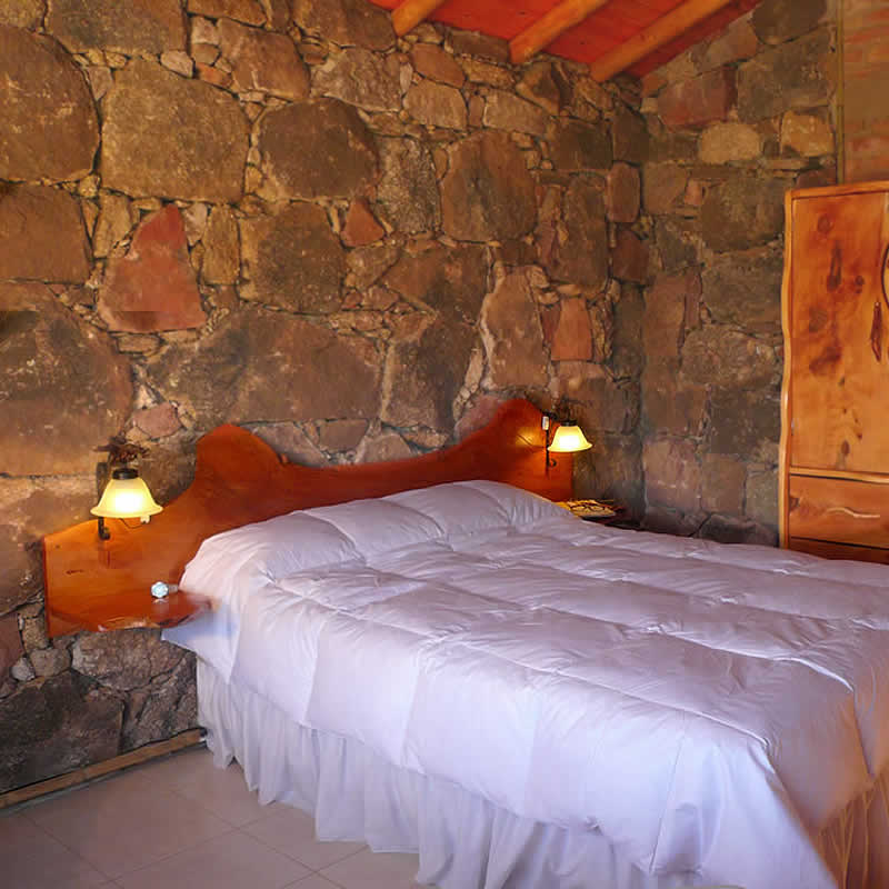Luminosas, cálidas y rústicas, el yacuzzi tiene un lugar privilegiado, muy cerca de los ventanales para disfrutar del paisaje. Cada cabaña de piedra y troncos cuenta con capacidad de hasta 4 personas y las siguientes comodidades: