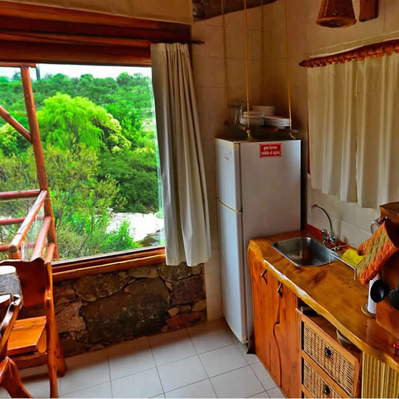 Sobre la privilegiada vista de las Sierras Grandes y a 300 metros del acceso al arroyo Los Sanjuaninos y los remansos del Río Chico, Casas del Arroyo permite disfrutar de un marco de belleza natural en estado puro desde sus cabañas de piedra y madera.
