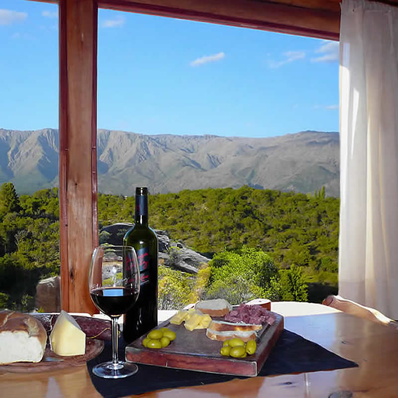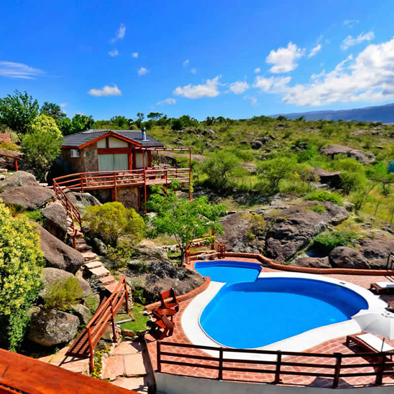 Nuestro Complejo se ubica a dos kilómetros del pueblo en una zona de escaso tránsito. La imponente vista de las Sierras Grandes, lo hace un lugar ideal para el descanso, la contemplación y relax.